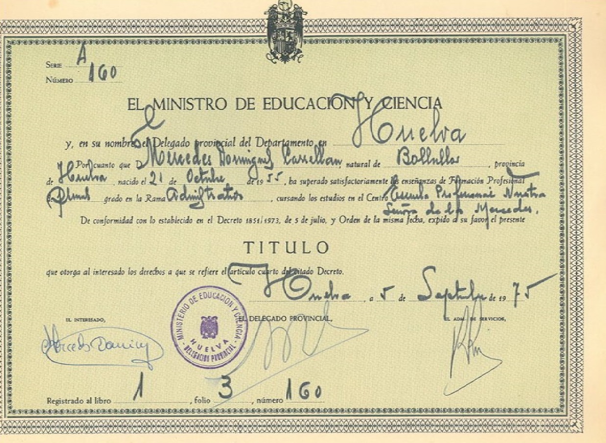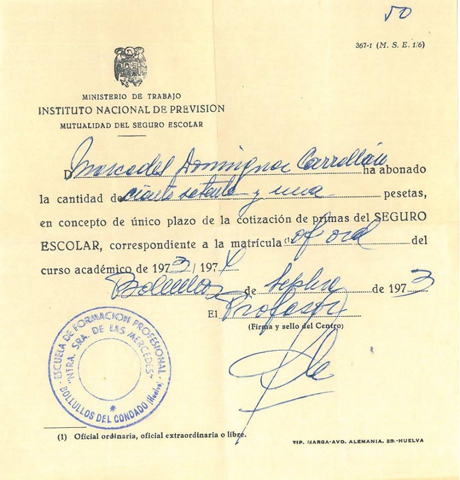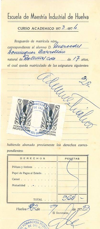 Hablamos de la Formación Profesional de 5 cursos, donde los dos primeros se obtenían el título de Oficialía (luego Técnico Auxiliar), y con los cinco se conseguía el de Maestro Industrial (luego Técnico Especialista). En esta época todavía los alumnos tenían que abonar una cantidad mensual para el mantenimiento del Centro.